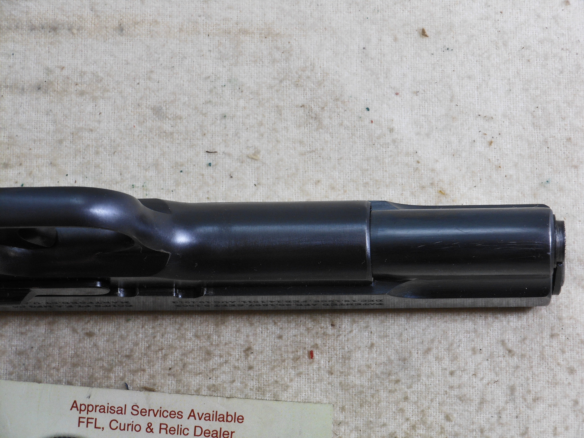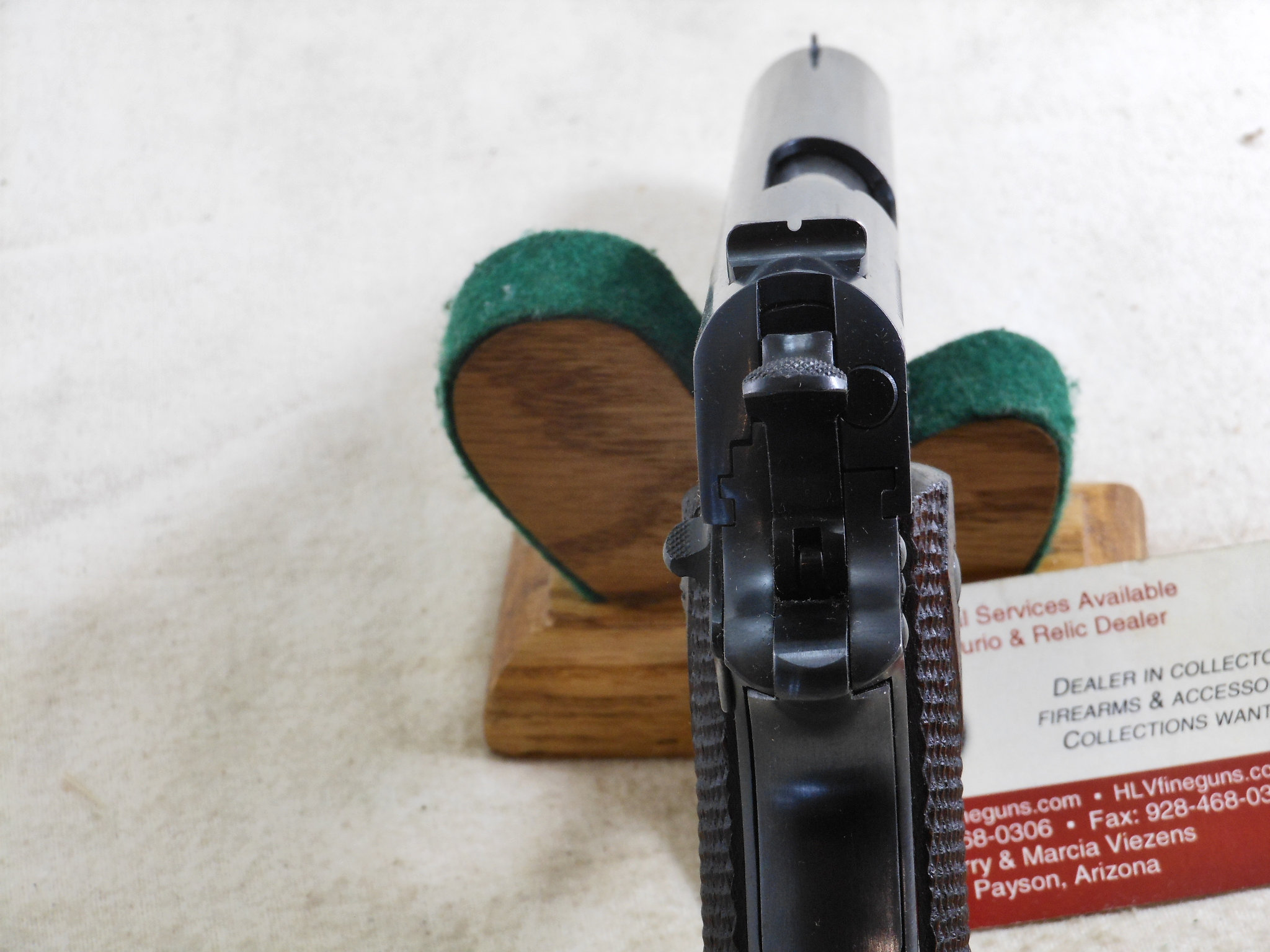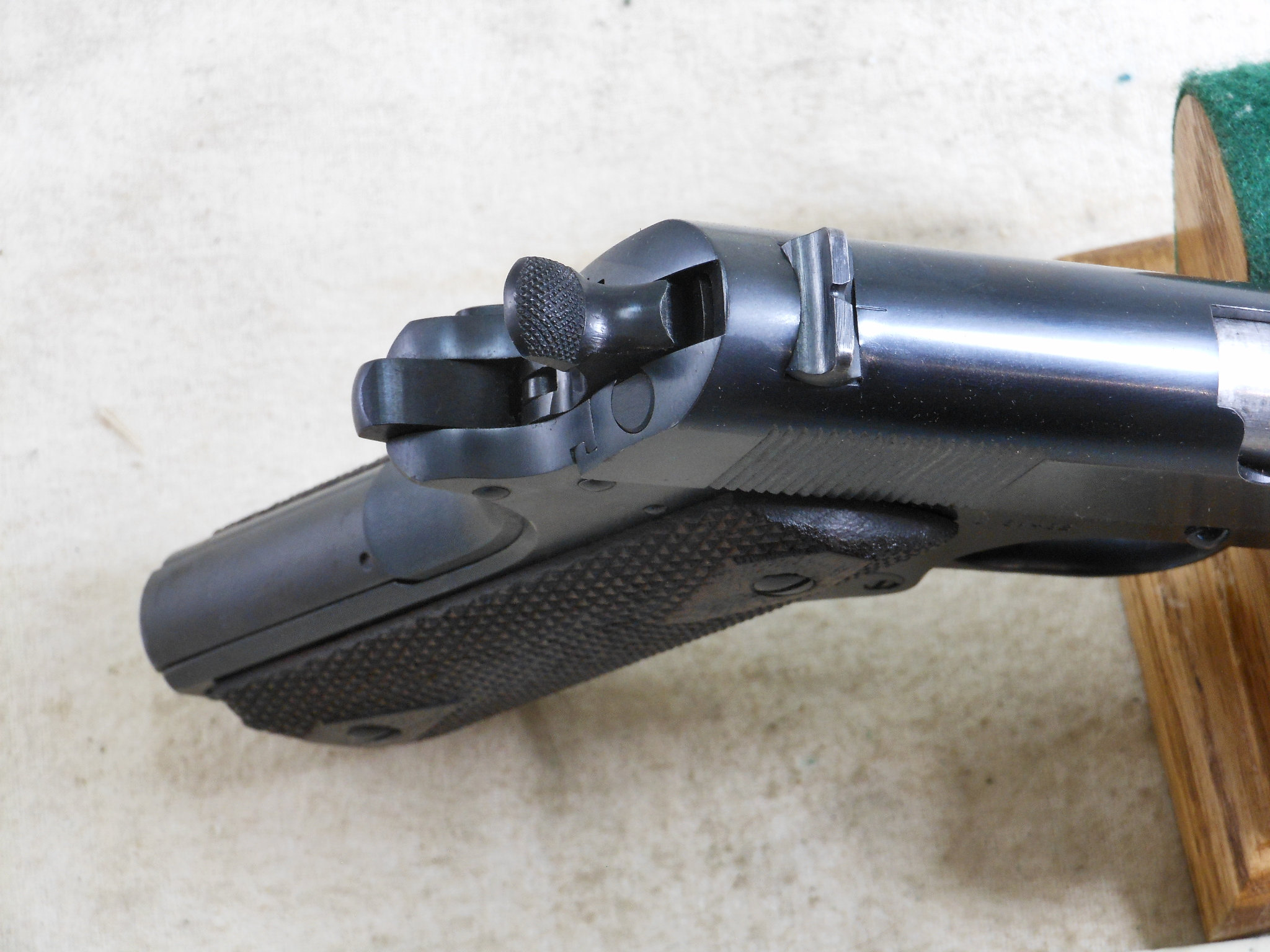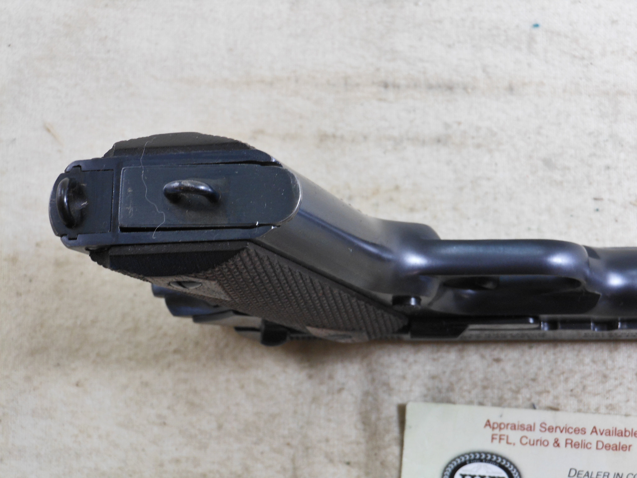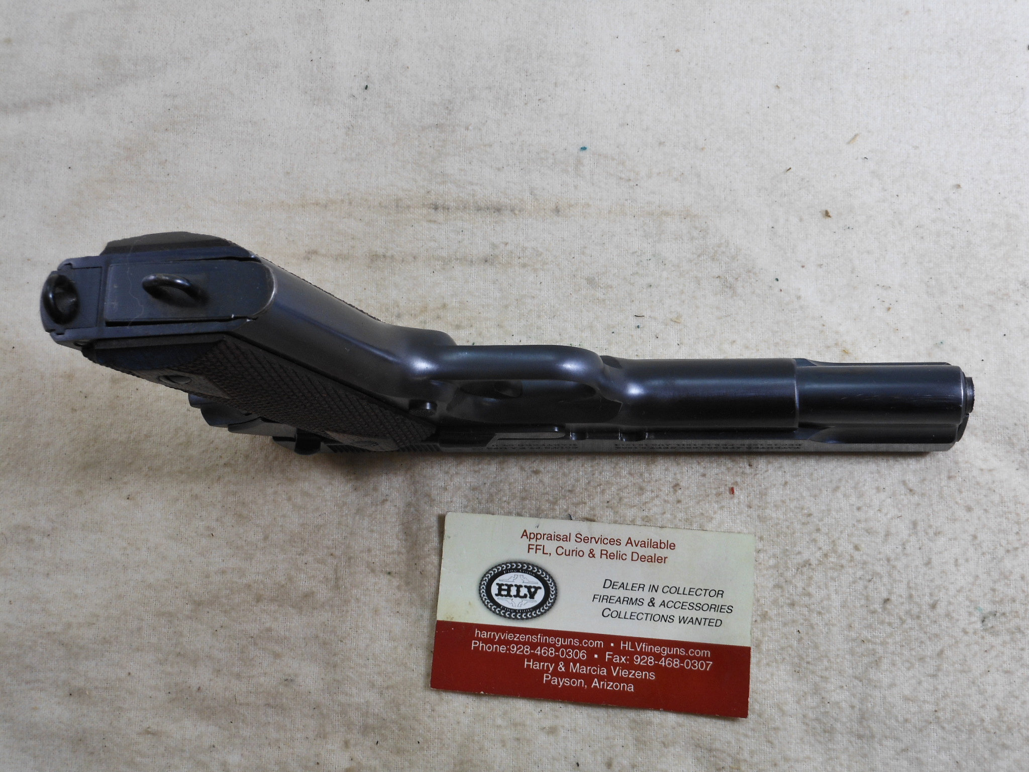 This Colt Government Model 1911 was produced in 1916. The Pistol’s serial number is C 61432. This Colt is in near unfired condition! The bore is in minty condition. The bolt face retains almost all of the original blue. The Barrel is the correct unmarked commercial barrel. The barrel retains almost all of the original bluing. The ejection port area of the barrel top is correctly in the white. The slide retains 98+% of the original bluing. The frame also retains about 99% of the original bluing. The correct wood grips are in new minty condition. The original magazine is the correct high polish commercial two tone magazine with the “U” staple on the floor plate. The action is crisp with no issues. This is a very rare pre World War One Colt in this fine of condition! All this Colt needs is a box! This Pistol belongs in a high end Colt Collection! This pistol is one stunning gun! The Box Of Shells Is Not For SALE! For Display Only!
