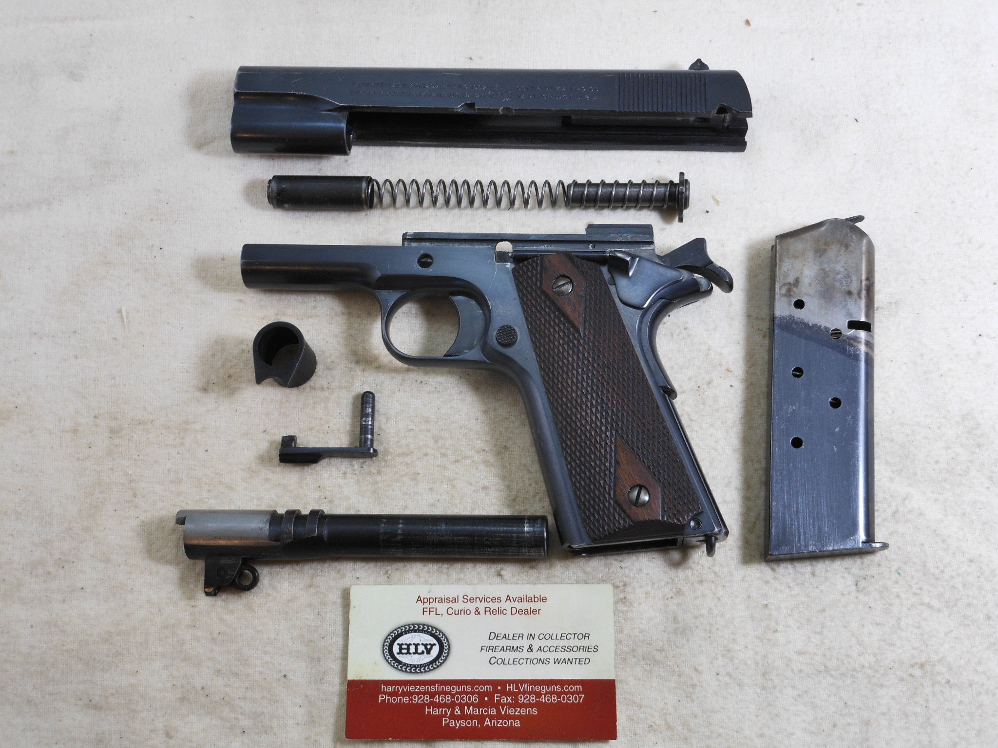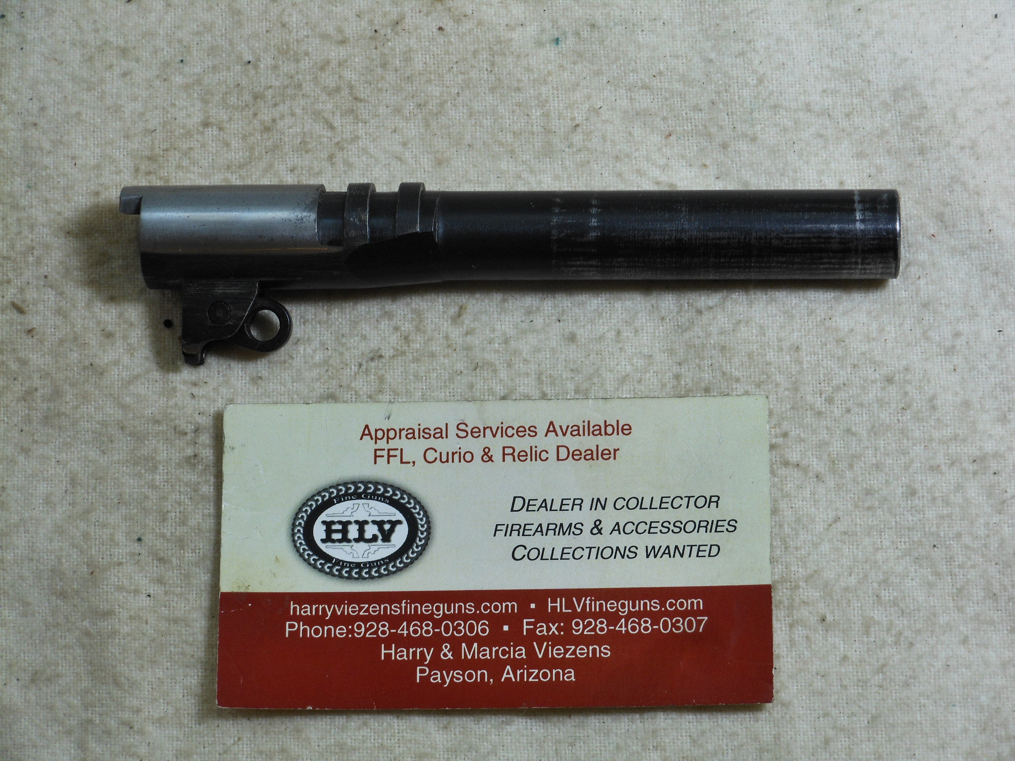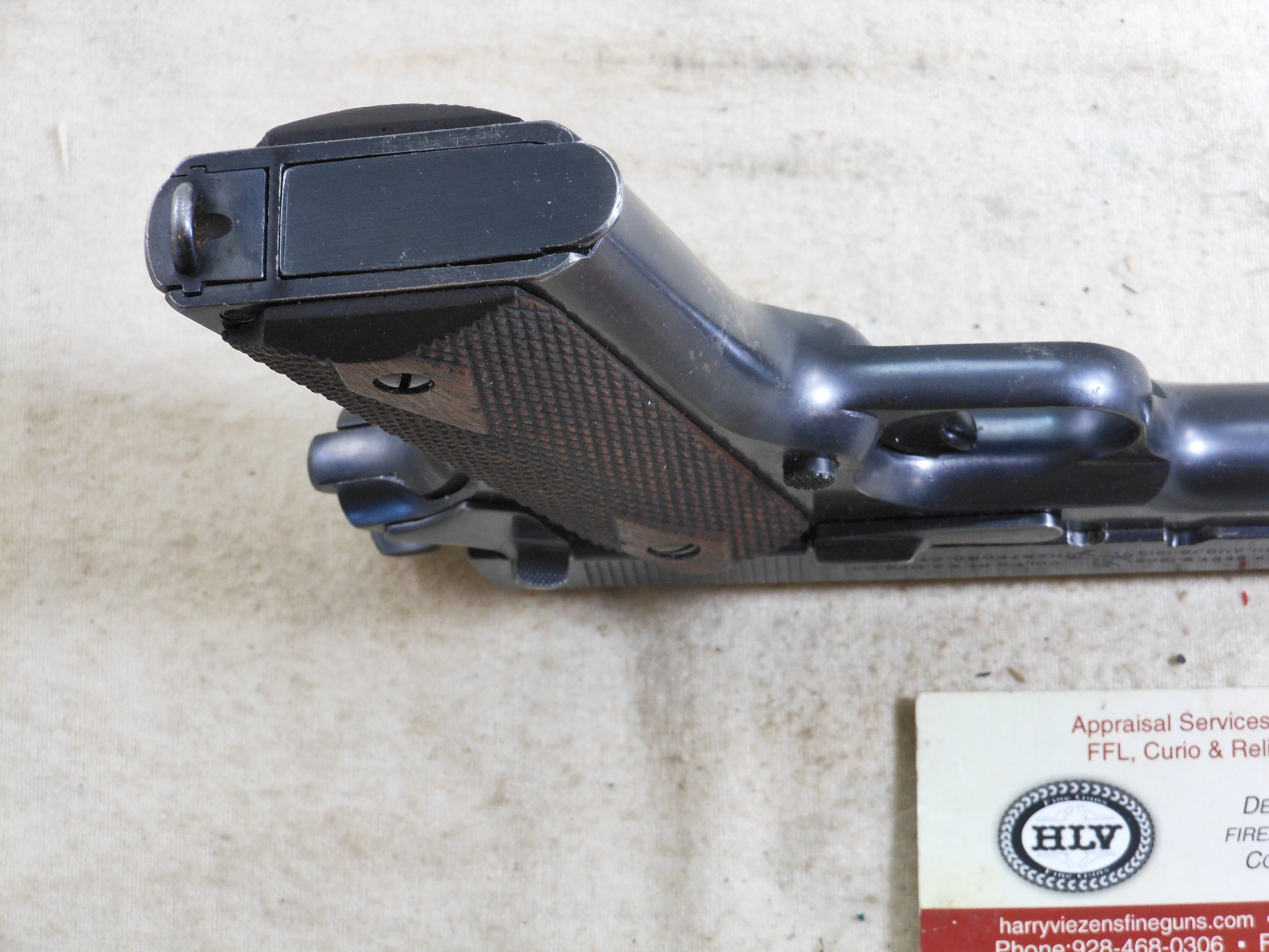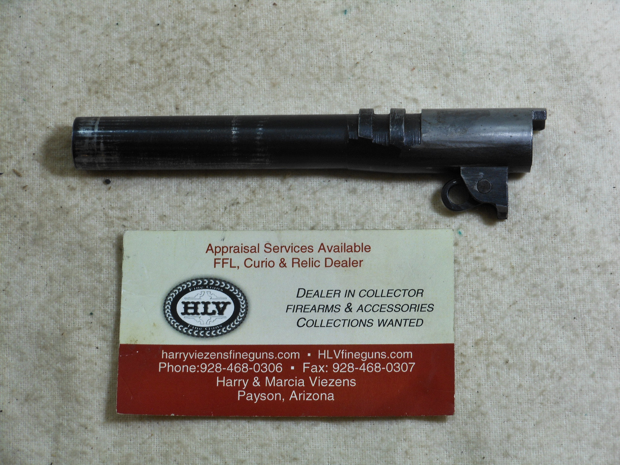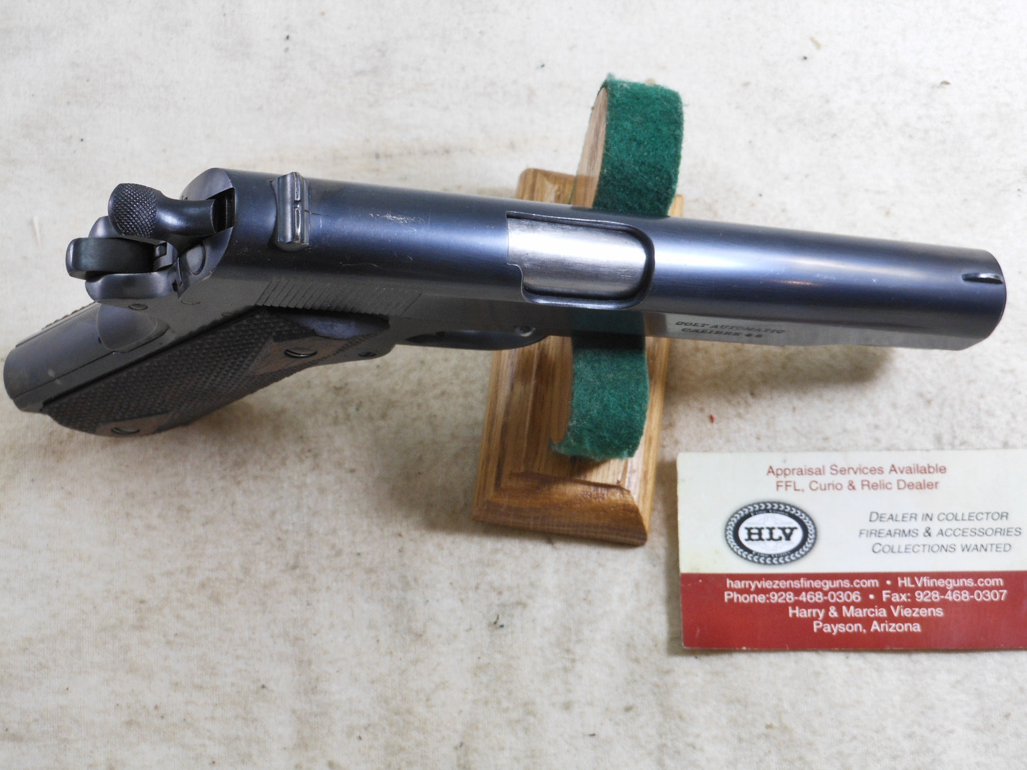 This Colt was produced in 1920. The pistol’s serial number is C125152. This Colt has seen very little use or being fired. The bore is in very fine bright condition. The original 45 A.C.P. barrel has the polished top of the barrel that is seen by the ejection port. This barrel retains most of the original bluing beyond the barrel top. The slide is snug and has no play on the rails. The slide retains about 97% of the original high polish bluing. The sights are original to this pistol. The frame retains about 97% or better of the original bluing. The action works perfectly fine with no issues. The original wood grips are in fine condition with no damage or flattened checkering points. The magazine is the correct high polish commercial two tone magazine with no magazine floor plate markings. There has not been any alterations or switched parts on this Colt. This Colt Government Model Commercial 45 A.C.P. is in really fine high condition! This pistol is the kind of high condition pistol collectors dream of finding for their collections! This Box Of Shells Is Not For Sale, For Display Only!