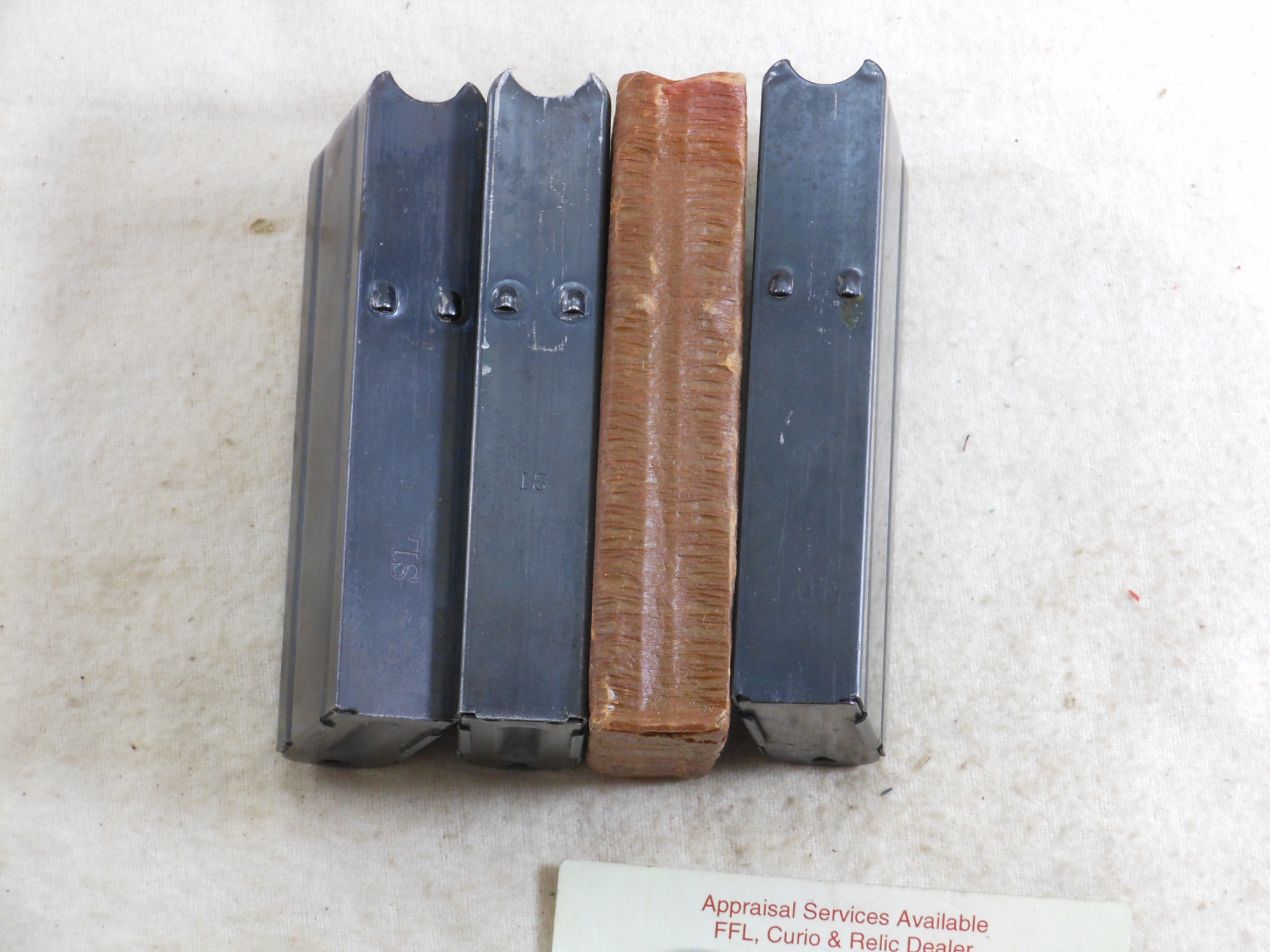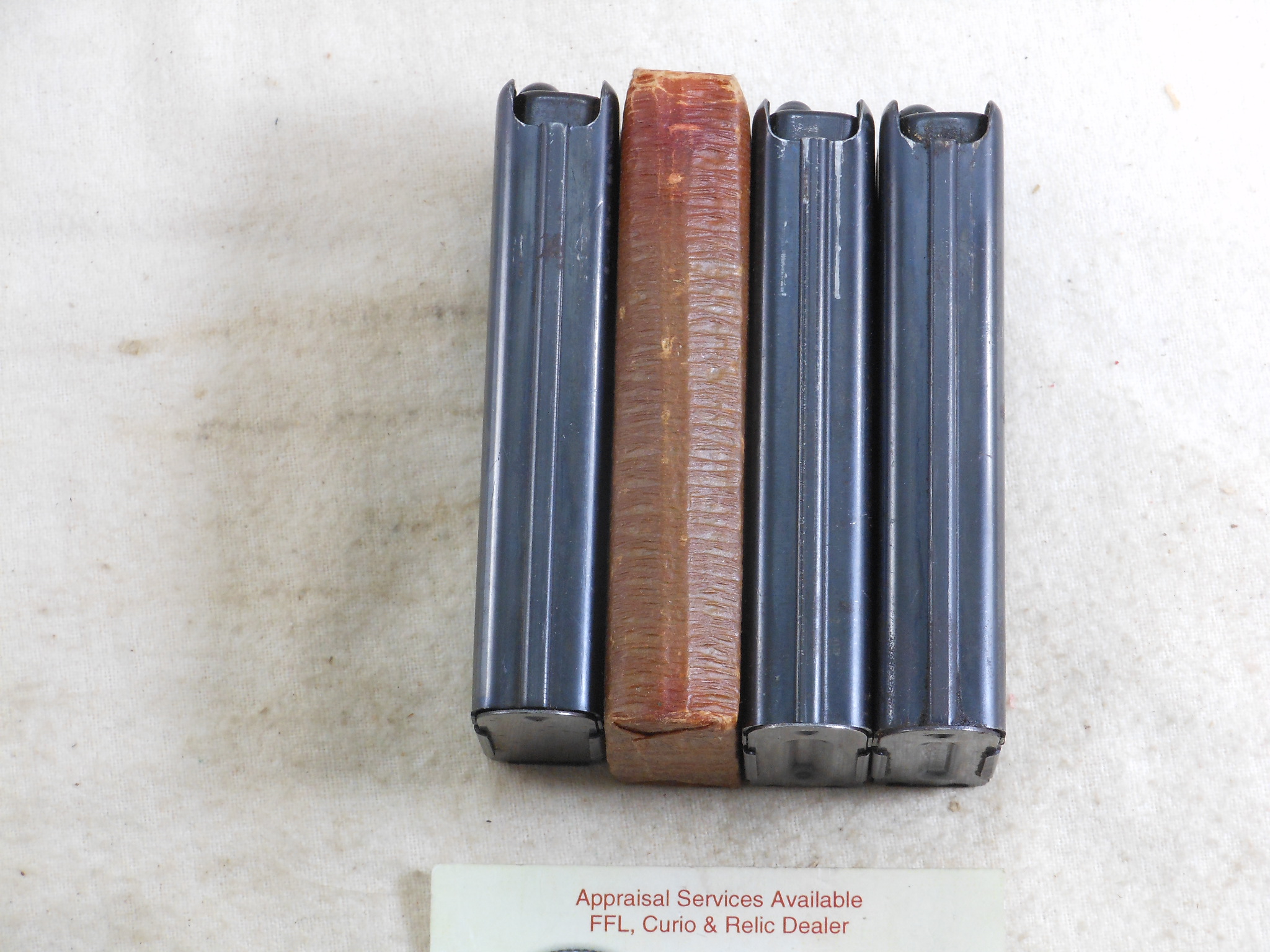 There is four M1 Carbine Magazines with one still in the wrapper. These are original G.I. World War 2 Issue 15 Round Magazines. The Codes on these magazines are LU, IS and SL The one in the wrapper is unknown. These magazines are fully functional and ready to be used.