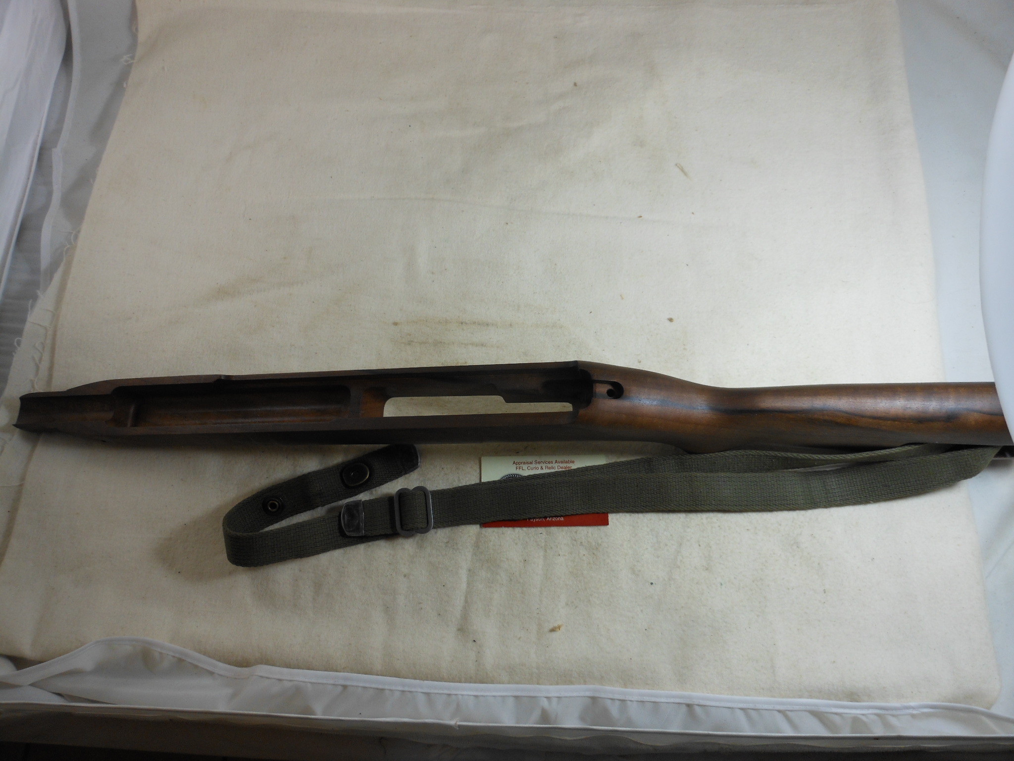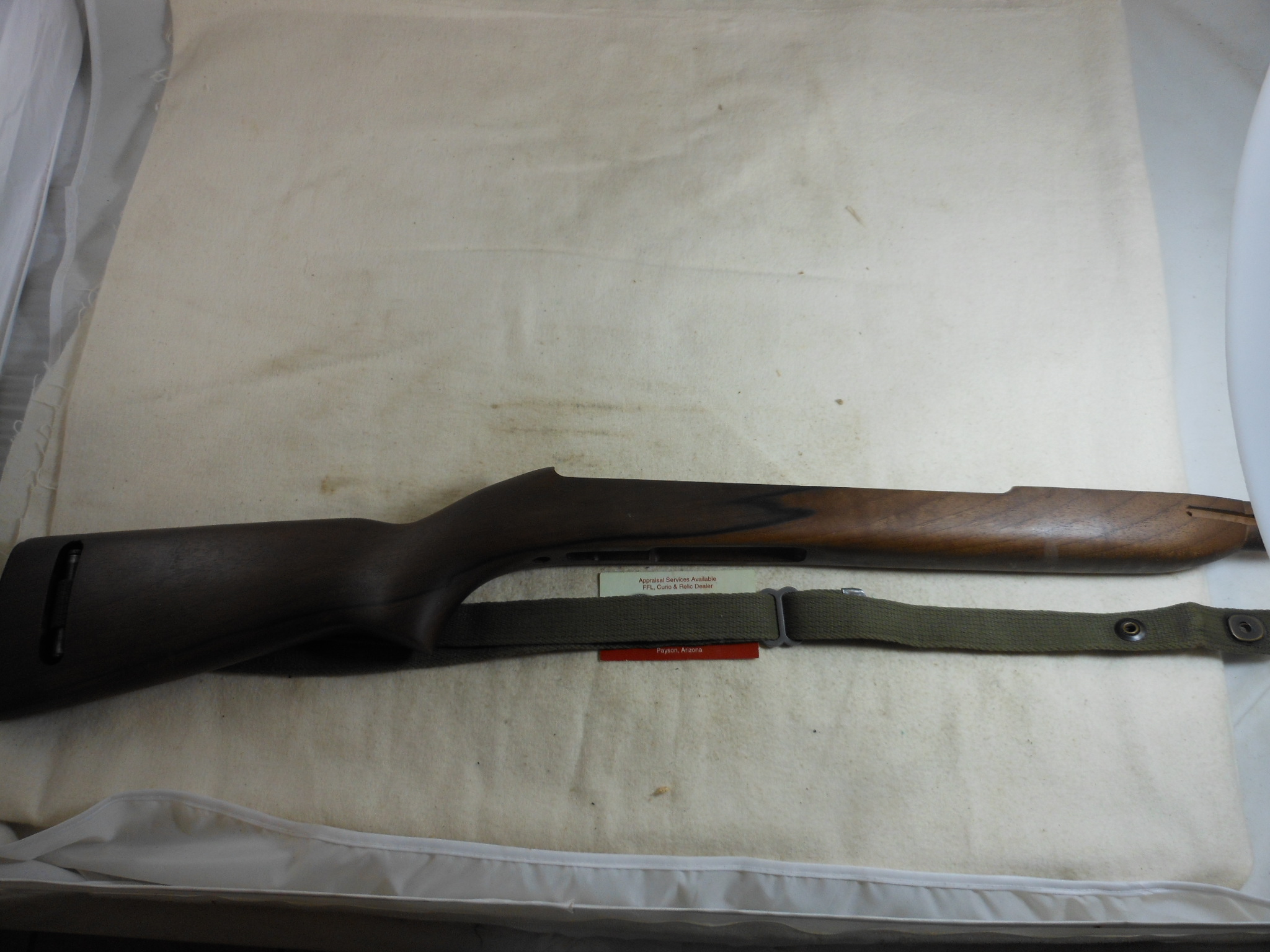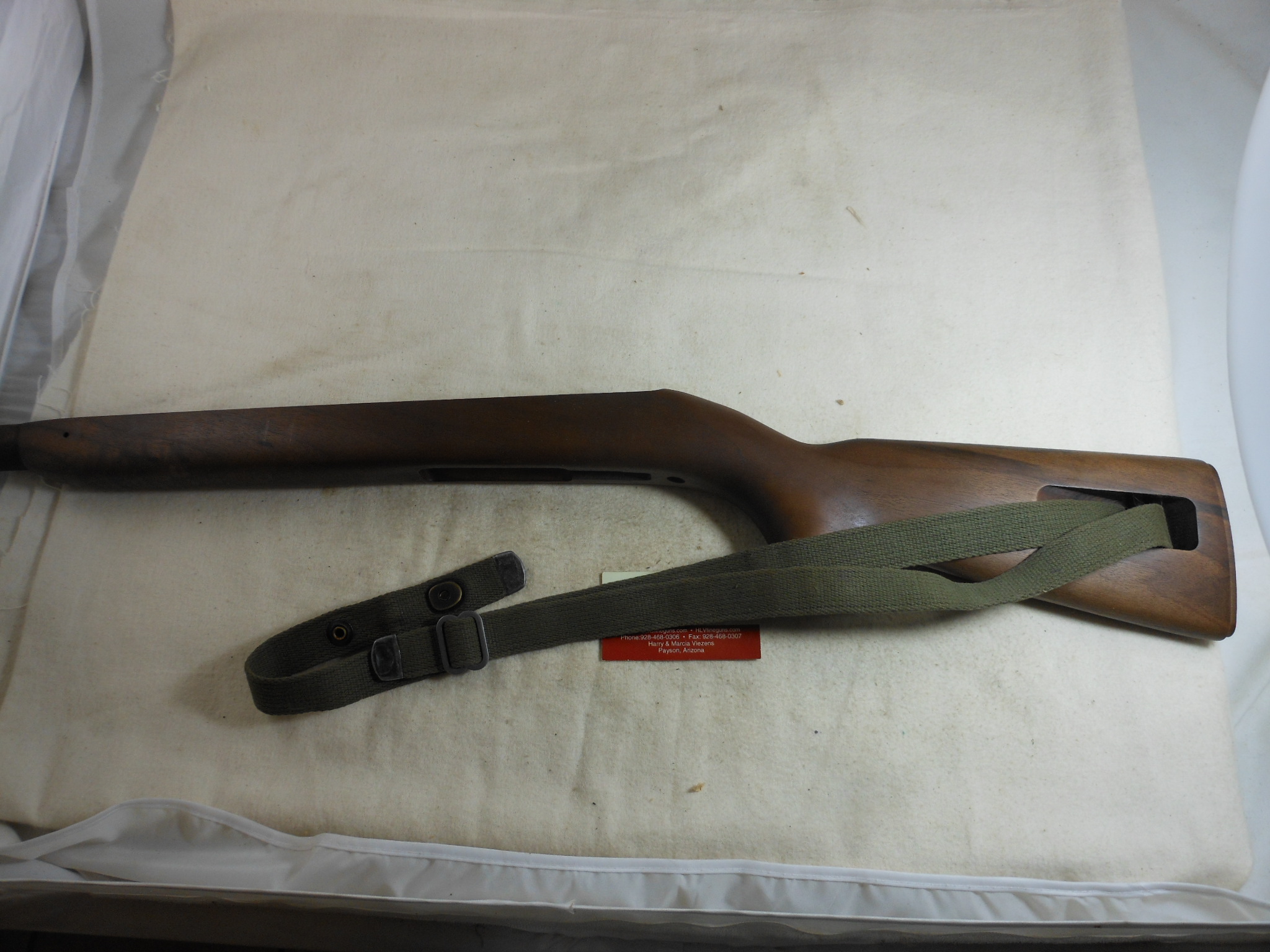 This is a new made M1 Carbine stock with very nice wood. There is no hardware with this stock. This stock is set up to use G.I. parts. There is a Korean war sling and oiler that will come with this stock.